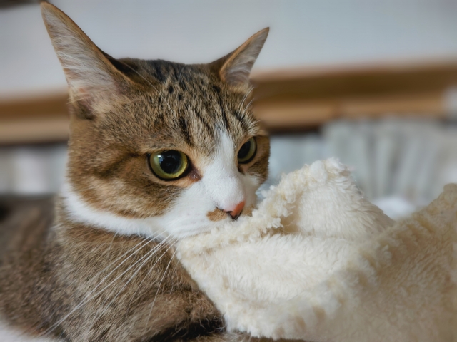 • 猫の爪が出ていて痛いと感じたら、やさしくブランケットをかぶせてガードしましょう。