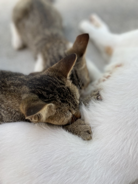子猫は母猫の乳を飲むとき、前足でおっぱいを押しながらミルクを出そうとします。